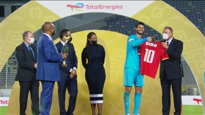 سلم الجنوب إفريقي باتريس موتسيبي، رئيس الاتحاد الإفريقي لكرة القدم «كاف»، محمد الشناوي كابتن الفريق، كأس