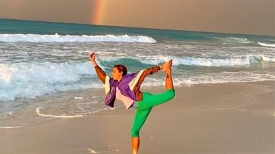 نشرت الفنانة ناهد السباعي صور جديدة برفقة والدتها، من أمام البحر أثناء ظهور قوس قزح وهى تمارس اليوجا، عبر حسابها الشخصي