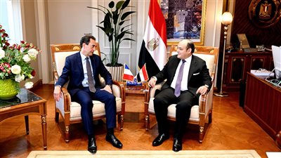 التقى المهندس أحمد سمير، وزير التجارة والصناعة، ايريك شوفالييه، سفير فرنسا بالقاهرة والوفد المرافق له حيث