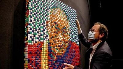 بيع عمل مصنوع من مكعبات "روبيك" يظهر الدالاي لاما بتوقيع إينفايدر، بأكثر من 468 ألف يورو