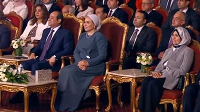 استمع الرئيس عبدالفتاح السيسي، والسيدة قرينته انتصار السيسي، إلى فقرة غنائية بعنوان أنا وانتي وهي من تقديم الفنانة أنغام.