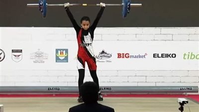 توجت بسمة رمضان لاعبة المنتخب المصري لرفع الأثقال بثلاث ميداليات ذهبية في وزن 45 ك، بدورة الألعاب الأفريقية التي تستضيفها