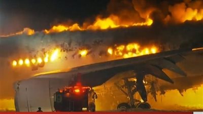 عرضت قناة القاهرة الإخبارية لقطات لاشتعال النار في طائرة بمطار هانيدا في طوكيو على متنها أكثر من 300 ر