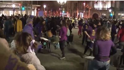 احتشدت الجموع من النساء والرجال فى ولاية برشلونة بأسبانيا للإحتفال باليوم العالمى للمرأة