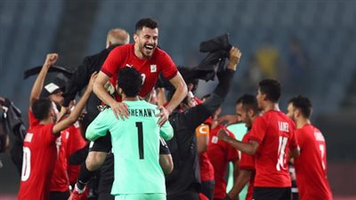 أحتفل محمود حمدي الونش، لاعب الزمالك مع نظيره محمد الشناوي، قائد الأهلى، بعد تأهل منخب مصر الأولمبى