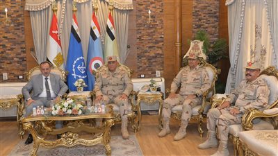 زار اللواء دكتور هشام أبو النصر، محافظ أسيوط، مقر قيادة المنطقة الجنوبية العسكرية لتقديم التهنئة إلى اللواء أركان حرب أسامة سمير عبداللطي