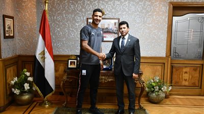 ألتقي أشرف صبحي وزير الشباب والرياضة، بديوان عام الوزارة، اللاعب عمر عصر لاعب المنتخب الوطني لتنس الطاولة، بعد تتويجه