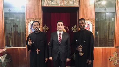 قـــام السفيـــر عمـاد حنـــا سفيـــر مصــر لــدى غانـــا بزيـــارة مقـــر الكنيســة المصريـــة في أكــرا لنقل تهنئة رئيس الجمهوريــــة