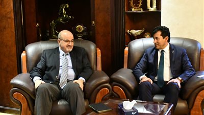 التقي الدكتور اشرف صبحي وزير الشباب والرياضة، الدكتور نعمة سعيد عابد ممثل منظمة الصحة العالمية بمصر،