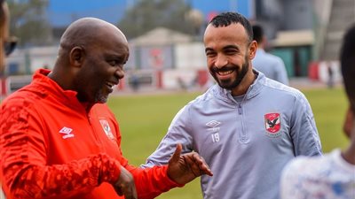 عقد بيتسو موسيماني، المدير الفني للفريق الأول لكرة القدم بالنادي الأهلي جلسة خاصة مع محمد مجدي أفشة لاعب الفريق