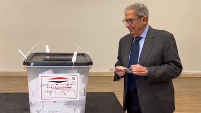 ادلي عمرو موسي وزير الخارجية السابق يدلي بصوتة بمدرسة بقصر النيل في الانتخابات الرئاسية في اليوم الثال