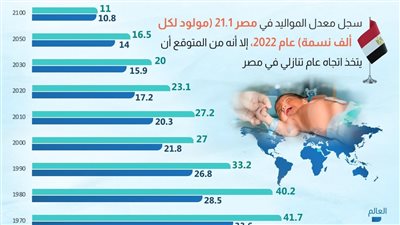 كشف مركز معلومات مجلس الوزراء أن معدل المواليد فى مصر بلغ ذروته في فترة الخمسينات ليصل إلى 54 مولودًا لكل ألف نسمة.