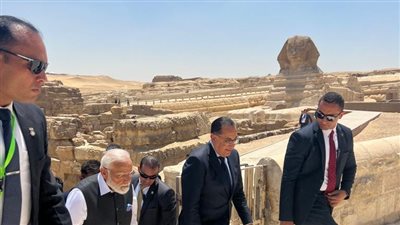 قام الدكتور مصطفى مدبولي رئيس مجلس الوزراء ونظيره الهندي ناريندرا مودي بجولة في منطقة الأهرامات بالجيزة