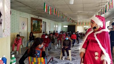 وسط الدمار وذكريات الحرب ترتدي شابة مسلمة كردية ملابس بابا نويل وتتجول في مدينة الموصل القديمة