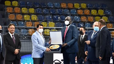 شهد الدكتور اشرف صبحي وزير الشباب والرياضة، مباراة نهائي كأس السوبر الإفريقي لكرة اليد بين الأهلي والزمالك على صالة الدكتور حسن