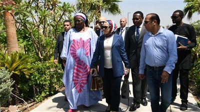 زارت سيليستين كيتشا، وزيرة الإسكان والتنمية الحضرية بدولة الكاميرون، والسفير محمدو لابارنج، سفير الكاميرون بالقاهرة،