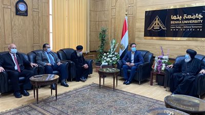 استقبل الدكتور ناصر الجيزاوى القائم بأعمال رئيس جامعة بنها، وفدًا من الكنيسة القبطية الأرثوذكسية برئاسة نيافة الأنبا