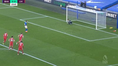 أهدر موباي لاعب برايتون ركلة جزاء في الدقيقة 20 أمام ليفربول المحترف ضمن صفوفه النجم المصري محمد صلاح
