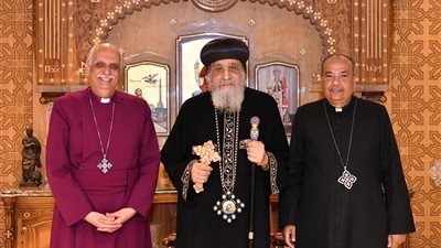 استقبل قداسة البابا تواضروس الثاني في المقر البابوي بالقاهرة اليوم الثلاثاء، نيافة المطران الدكتور سامي فوزي رئيس الكنيسة الأسقفية بمصر وشمال إفريقيا والقرن الإفريقي، يرافقه القس يشوع يعقوب الأمين