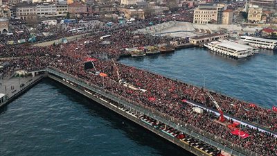 شهدت مدينة اسطنبول التركية فجر اليوم الاثنين مسيرة حاشدة بمشاركة عشرات الآلاف تضامنا مع غزة، وتنديدا بالحرب الإسرائيلية