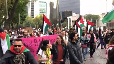 إنطلقت مسيرة حاشدة في مدينة ميكسيكو، عاصمة المكسيك الفيدرالية؛ دعماً لفلسطين وتنديداً بجرائم الاحتلال ا