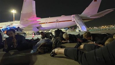 شاهد.. انبطاح المستشار الألماني والوفد المرافق له خوفا من صواريخ المقاومة بمطار "بن غريون"