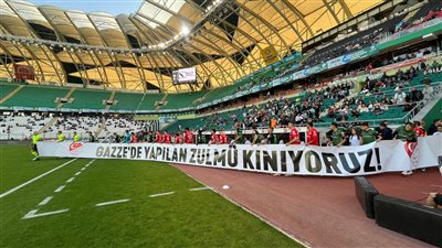 حرص الجماهير واللاعبين على دعم الشعب الفلسطيني، خلال مباراة بينديك سبور ضد قونيا في إطار منافسات الجولة...