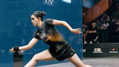 توجت البطلة المصرية هانيا الحمامي لاعبة وادي دجلة والمصنفة الثالثة عالمياً لسيدات الاسكواش، ببطولة مصر المفتوحة الأهرام للاسكواش