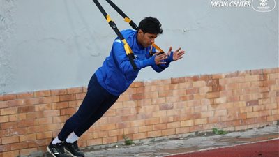 واصل أحمد حمودي نجم خط وسط الفريق الأول للكرة بالنادي المصري برنامجه التأهيلي تحت إشراف الجهاز الطبي للفريق