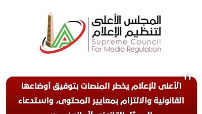 أخطر المجلس الأعلى لتنظيم الإعلام جميع المنصات الرقمية والفضائية المشفرة بضرورة الالتزام بالقواعد