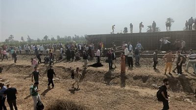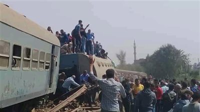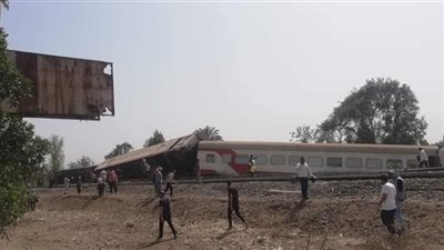 وردت أنباء عن وقوع عدد من المصابين فى حادث انقلاب عربات قطار 949 القاهرة - المنصورة عن القطبان.