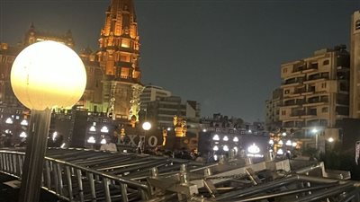 انتقل فريق من جهات التحقيق إلى قصر البارون لإجراء المعاينة الأولية في موقع حادث سقوط ستاند حديد مخصص
