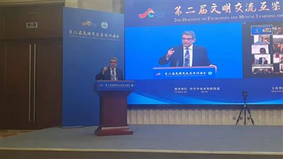 شارك السفير محمد البدري، سفير مصر في بكين، بالحوار الذي أقيم حول "التبادل والتعلم المشترك بين الحضارات" .