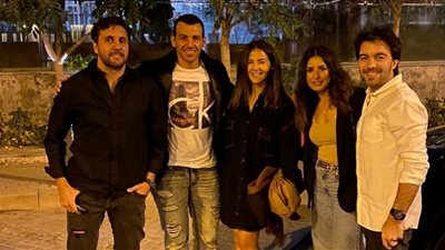نشرت الفنانة دينا سمير غانم، صورة جديدة لها برفقة مجموعة من أصدقائها و زوجها الإعلامي رامي