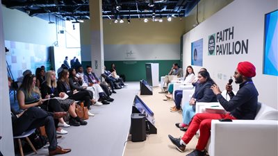 استضاف جناح الأديان في COP28 خلال فعاليات يومه الثامن، اليوم الجمعة الموافق 8 ديسمبر الجاري، جلسةً حواريةً