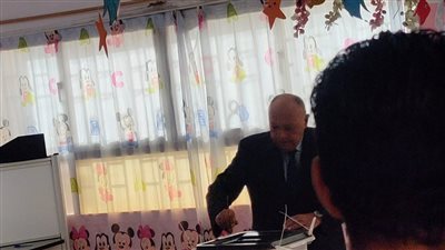 ادلي سامح شكري وزير الخارجية بصوته في الانتخابات الرئاسية بمدرسة فاطمة عنان بالتجمع الخامس ويشرف على ا