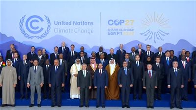 توسط الرئيس عبد الفتاح السيسي، اليوم الاثنين صورة تذكارية جماعية مع قادة وزعماء العالم المشاركين بقمة مؤتمر الأطراف