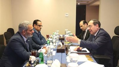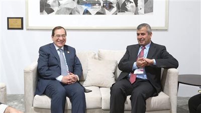 عقد المهندس طارق الملا وزير البترول والثروة المعدنية جلسة مباحثات مع الدكتور صالح الخرابشة وزير الطاقة الاردنى بالجناح