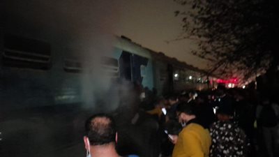 نشب حريق بإحدى عربات القطار " القاهرة - الإسكندرية" رقم 921، بمدينة طوخ، ما أدى حدوث حالة من الهلع والفزع للمواطنين نتيجة الحريق.