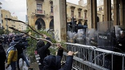 أحداث عنف وشغب بين المتظاهرين والأمن بمحيط البرلمان اللبنانى..فيديو