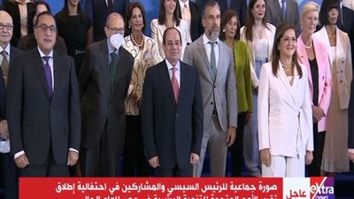 إلتقط الرئيس عبد الفتاح السيسي صورة جماعية مع المشاركين في إطلاق تقرير الأمم المتحدة للتنمية البشرية في مصر، وذلك بعد