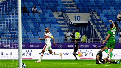 زينت جماهير نادي الزمالك مدرجات آل مكتوم، أمام نظيره الأهلي السعودي ضمن منافسات كأس تحدي دبي، يرتدي محمد