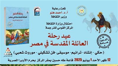 تحتفل وزارة الثقافة بمقر المركز القومي للترجمة برئاسة الدكتورة كرمة سامي بعيد رحلة العائلة المقدسة في مصر