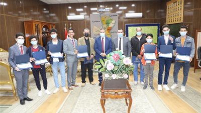 كرم اليوم اللواء إبراهيم أحمد أبو ليمون محافظ المنوفية الطلاب الفائزين في مسابقة (ISEF/2021) الدولية للعلوم والتكنولوجيا.