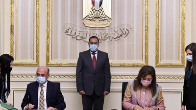 شهد الدكتور مصطفى مدبولي، رئيس مجلس الوزراء، اليوم بمقر مجلس الوزراء، مراسم توقيع بروتوكول تعاون بين وزارتي