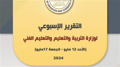 أصدر المركز الإعلامي لوزارة التربية والتعليم والتعليم الفني التقرير الأسبوعي للوزارة خلال الفترة من (الأحد 12 مايو - الجمعة 17 مايو 2024) ويتضمن ما يلي: