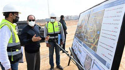 تفقد الرئيس عبد الفتاح السيسي بعد ظهر اليوم الجمعة مشروع مركز النقل المتكامل بمساحة 300 فدان، والذي يقع شمال تقاطع طريق .