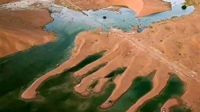 شغل مشهد مفاجئ ونادر لسيول تتدفق من باطن الأرض في منطقة نفود الدحي بصحراء الربع الخالي جنوب شرق السعودية