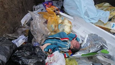 عثر الاهالى اليوم على طفل رضيع في حالة صحية صعبة داخل صندوق قمامة أمام احد المساجد بقنا.
