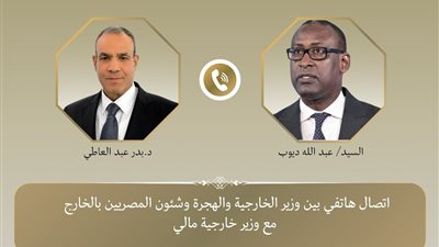 جري يوم الأحد ١٤ ديسمبر إتصال هاتفي بين د. بدر عبد العاطي وزير الخارجية والهجرة وشئون المصريين بالخارج والسيد عبد الله ديوب، وزير خارجية جمهورية مالي لبحث تعزيز العلاقات الثنائية
